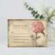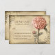 carte de réponse de mariage rustique vintage avec deux fleurs de pivoines roses absolument magnifiques tirant sur l'ancien arrière - plan de papier papier entouré de tourbillonnant accents de floraison.
