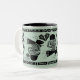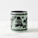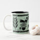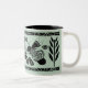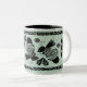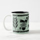 Dessins d'encre de plante et d'abeilles géométriques anciennes sur une tasse verte. Inspiré par le style de poterie antique. Le rock.
