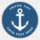 Ancrage de navire bleu et blanc nautique merci les autocollants. Stylish marine bleu et blanc favorisent autocollants et enveloppes scellés. Merci personnalisées autocollants, enregistrer le étiquette de date, scelleurs d'enveloppe. Logo maritime classique. Couleur arrière - plan personnalisable. Nice pour la fête de mariage à thème, Anniversaire, baby shower, douche nuptiale, fiançailles, anniversaire ou jours fériés. Idéal pour navigateurs, skipper, capitaine, passionnés de voile, etc. Ajoutez votre propre nom de famille ou vos initiales ainsi que la date établie du mariage. Accessoires de mariage de destination plage et fournitures de fête.