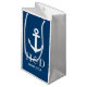 Ancrage nautique monogramme mariage en faveur sacs cadeaux. Design maritime mignon avec ancres pèsent symbole et initiales de nom. Ancrage monogramme bateau / bateau avec initiales en typographie élégante. Personnalisé avec des lettres stylisées pour mariée et mariée plus la date du mariage. Parfait cadeau jeton / sacs souvenir pour plage / mariages à thème balnéaire. Joli bleu marine et blanc.