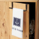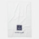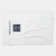 Ancrage blanc et bleu marine serviettes de cuisine personnalisées. Ancrage bleu marine et blanc carré avec votre nom sous un arrière - plan blanc.