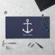 Souris minimaliste moderne avec ancre blanche avec nom personnalisé en blanc style de police sans serif moderne sur arrière - plan bleu marine.