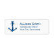 Étiquettes d'adresse de retour classiques et cool avec un design d'ancre bleu marine nautique sur un arrière - plan blanc. Moderne, chic et preppy.