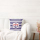 Un coussin comportant une illustration d'une ancre avec une bannière qui peut être personnalisée avec le nom. L'arrière - plan est les rayures bleues.