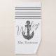 Nautical Monogrammed Silver Grey Ancre Plage Mariage serviette de plage.Script de calligraphie moderne Wifey sur une Ancre et personnalisée avec Mme. ...name. : Serviette de plage Ancre nautique.. Élégante serviette Wifey Nautique personnalisée La serviette "Wife" dispose d'une serviette Hubby Correspondante que vous pouvez acheter pour correspondre à cette serviette. C'est un complément idéal à toute fête de destination mariage, pour les jeunes mariés ou les vacances en lune de miel. Collection de Mariages correspondant.