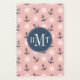 Ancrage nautique et motif du volant du navire en bleu marine, blanc et corail.