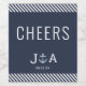 Ces étiquettes de vin personnalisés disposent d'un monogramme d'ancre et de rayures sur un arrière - plan bleu marine. Parfait pour les sacs hors de la ville pour les clients à votre mariage nautique sur la côte Est.