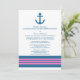 Elégante et classique Faire-part de mariage d'Ancres nautiques avec une simple ancre de bateau et un ensemble de rayures en bleu marine foncé et rose. Cette invitation de mariage sur le thème de la plage nautique peut être facilement customisé avec vos détails mariages. Pour plus d'options de personnalisation, cliquez sur le bouton Customiser.