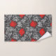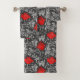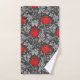 Ensemble de serviette dans un motif floral vintage de damassé de William Morris des fleurs et du feuille d'anémone, numériquement augmenté et coloré - gris argenté léger/feuille gris, et fleurs aux nuances du rouge profond de rouge à lèvres sur un arrière - plan foncé de gris de graphite
