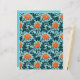 Papier dans un motif damassé floral vintage William Morris d'anémones et de feuilles - feuilles bleu indigo profond et fleurs aux nuances d'orange corail sur un fond bleu chambray clair