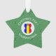 Cet ange est habillé du tricolore rouge, jaune et bleu de la Roumanie sur un ornement en étoile pour les vacances et le décor de Noël. L'ange de Noël du drapeau roumain se trouve à l'intérieur d'un cercle de carrés blancs. L'arrière - plan est un carré vert et grossier. Ajoutez votre propre texte ou personnalisez avec un nom et une année.