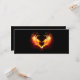 Angel fire heart with flaming wings on black background.