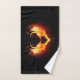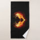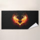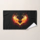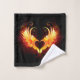 Angel fire heart with flaming wings on black background.