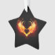 Angel fire heart with flaming wings on black background.