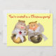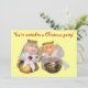 Cette invitation de Noël est décorée de deux adorables petits ornements d'anges, tous habillés de perles, rubans et arcs. Leurs expressions sont douces avec juste une pointe de malice ajoutée. Le texte en avant dit : Vous êtes invité à une fête de Noël. Le dos donne les détails. Tout le texte est personnalisable.