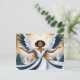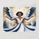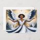 Ange de Noël noir en Carte postale bleue et or.