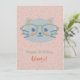 Cette carte d'anniversaire personnalisée d'un chat mignon avec des lunettes énormes est parfaite pour les enfants. Les couleurs bleu, jaune et orange et les confettis dans les coeurs, les points et les étoiles donnent à cette carte d'anniversaire colorée une sensation unique. Souhaitez à votre tout-petit un joyeux anniversaire avec une note sincère. Vous leur apporterez un sourire !