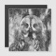 Portrait graphique d'un grand hibou gris en noir et blanc