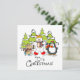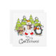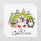 Une carte à plat design de Noël, mignonne et colorée, avec un ours polaire, un pingouin et une souris, tous avec des écharpes et des patins à glace avec des arbres enneigés et un texte qui dit C'est Noël !
