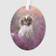 Cette jolie photo de Getty Images présente un chiot de race Pekingese assis dans des fleurs roses.