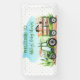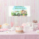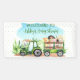 Banderole de fête pour baby shower avec un tracteur vert transportant un animal de ferme mignon.
