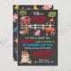 Super mignon animaux de ferme avec amusante fonts d'anniversaire invitation fête d'anniversaire. Idéal pour un garçon ou une fille ! Comprend un cochon, une vache, un cheval et un poulet bébé sur un arrière - plan de tableau noir.