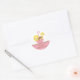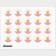 Des autocollants de baby shower doux avec un joli trio d'animaux de la jungle nichés dans un parapluie à pois rose.