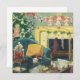 Illustration vintage Joyeuse scène de Noël avec une salle intérieure d'une maison. Un salon avec un sapin de Noël décoré, des bas accrochés à la cheminée, une collation et une lettre laissées au Père Noël et aux animaux de compagnie (un chaton et un chien chiot) se baladent ensemble sur le canapé en attendant Père Noël.