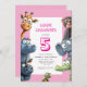 Promenez-vous dans un zoo passionnant avec ce faire-part de fête ludique ! Ce design animé présente un délicieux éventail d'animaux de zoo mignons et excentriques, tous réunis pour célébrer une occasion spéciale. L'arrière - plan rose joyeux améliore l'ambiance festive, ce qui en fait un choix fantastique pour une fête d'anniversaire d'enfant, surtout pour un 5ème anniversaire. Cette faire-part ravira tout le monde pour une journée remplie d'amusement, de jeux et de festivités à thème jungle. Faites de l'anniversaire de votre enfant un événement spécial grâce à ce design charmant et attrayant.