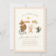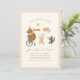 Célébrez la journée spéciale de votre petit avec cette charmante invitation de premier anniversaire avec des animaux de bois fantaisistes en casquettes de fête. Un ours chevauchant un monocycle, un lapin avec des ballons, et un crâne soufflant une corne créent une scène amusante inspirée du cirque. Parfait pour une fête d'anniversaire sur le thème des bois, du cirque ou des animaux. Customisez avec le nom de votre enfant et les détails de la fête pour une fête mémorable!