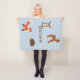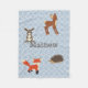 Doux couverture en toison bleu bébé, avec un motif quadrefoil blanc et des graphiques adorables d'un faon, renard, hérisson et lapin. Personnalisez le texte marron. Belle idée cadeau bébé.