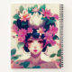 Journal in an illustration of a stylized anime girl with delicate features, her dark hair adorned with vibrant pink lotuses, lush green leaves, and a large white lotus crowning her head.