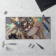 Portrait animé d'une blonde en cornes en rouilles noires, avec un monocle étoilé ailé, des accents de pierres précieuses et des éruptions irisées. Un luxueux mélange de steampunk, de motifs célestes et d'imaginaire sombre et élégant pour les amateurs d'art de caractère détaillé.