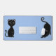 Animes de chat noir mignon sur bleu clair.