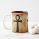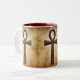Cette tasse conçue par Ankh est typiquement le symbole égyptien antique de l'Ankh, qui représente la vie et l'immortalité. Cette tasse a une forme moderne et épurée et un design céramique plus traditionnel. Le symbole Ankh lui-même est affiché en évidence, imprimé sur la surface. Il peut être rendu en or, noir et marron pour un contraste frappant par rapport à la couleur de base de la tasse, qui est blanc. Dans l'ensemble, une tasse conçue par Ankh n'est pas seulement un objet pratique pour déguster des boissons, mais aussi une oeuvre d'art qui reflète la riche histoire et le symbolisme de l'Egypte ancienne.