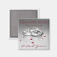 Magnet Réservez la date, avec des anneaux mariages en argent et des coeurs rouges. Entrez vos informations dans notre modèle convivial.