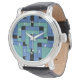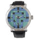 Annexe montres pour hommes, femmes et enfants eWatch avec des nombres blancs. Annexe est un design abstrait créé par Vexenwraith et se compose de blocs turquoise et bleu sur un arrière - plan noir.