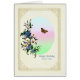 Une belle carte d'anniversaire fleurie pour quand vous êtes un peu en retard l'envoyer! Un joli bouquet de fleurs bleues et blanches avec un papillon marron en vol. L'image a un cadre doré délicat.