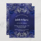 Un arrière - plan bleu marine, décoré de roses bleus, de fleurs. La couleur bleue est inégale. Personnalisez et ajoutez un nom et des détails du parti. Dos : bleu marine et faux brillant argent. 1 feuille = 1 invite imprimé bord à bord.
