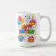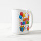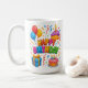 Laisse les confettis voler ! Cette tasse d'anniversaire amusante et festive déborde de ballons, de gâteaux, de cadeaux et de serpentins, le tout autour d'un texte audacieux et de couleur arc-en-ciel "Joyeux anniversaire". Conçu par Callum AI pour apporter la joie, la couleur et les sourires alimentés par les gâteaux à toute célébration d'anniversaire.