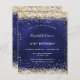 Une invitation moderne, élégante et glamour pour une fête d'anniversaire de 21e (ou tout âge). Un arrière - plan bleu marine, décoré avec de la poussière de parties scintillant en faux or. La couleur bleue est inégale. Personnalisez et ajoutez votre nom et les détails de votre fête.