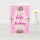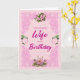 Une jolie carte d'anniversaire pour une femme. Une élégante traçerie en ensembles roses des quatre roses roses. L'arrière - plan est un motif de fleurs rose pâle. Une belle carte à envoyer à une femme pour son anniversaire.