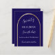 Une carte Save the Date pour une fête d'anniversaire de 70e (ou tout autre âge). Un arrière - plan bleu foncé, décoré d'un faux arc doré. Personnalisez et ajoutez une date et votre nom. Le texte : Soixante-dix et Enregistrer la Date est écrit avec un grand script de style à la main tendance. 1 feuille = 1 Enregistrer la date d'impression arête à arête.