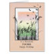 Carte d'anniversaire pour votre professeur. Une belle carte d'anniversaire montrant des herbes de prairie et des papillons.Un coucher de soleil abstrait dans l'arrière - plan donne une atmosphère très tranquille. Un joli verset à l'intérieur complète cette carte d'anniversaire pour dire à votre professeur "heureux anniversaire".
