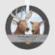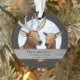 Voici un ornement d'anniversaire de mariage sur le thème de la faune que vous pouvez personnaliser ! Deux élans illustrés apparaissent au-dessus d'une bordure en bois gris rustique où vous pouvez ajouter deux noms, le nombre d'années ensemble et une date de mariage. Un motif de filigrane noir subtil encadre ce cadeau totalement personnalisé !