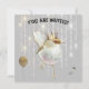 Invitation d'anniversaire pour les enfants. Le texte est personnalisable de sorte que toute occasion y compris les somnifères est appropriée. La couleur arrière - plan est également personnalisable. Chant oiseau sur des gouttes brillantes, une plume et un ballon d'or.
