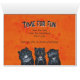 Une carte d'anniversaire conçue pour ceux qui fêtent leur anniversaire à Halloween ou aux alentours. La carte présente trois jeunes chats, tous noirs, tous plutôt enthousiastes, regardant directement le spectateur. Leurs pattes sont placées sur une surface horizontale, comme une table ou un banc. L'intérieur de la carte présente un design joliment assorti, accompagné d'un couplet d'anniversaire (Temps pour s'amuser, temps pour la folie, temps pour tout ce qui est joyeux) et d'un message d'anniversaire (Espoir que vous avez un anniversaire passionnant). Le design s'inspire du tableau intitulé "There is Luck in Odd Numbers" (Il y a de la chance dans les nombres impétueux) du célèbre chaton britannique Louis Wain (1860-1939).