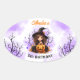 Stickers ovale d'Halloween pour les petites filles avec une petite sorcière mignonne et citrouille en violet, noir et orange. Personnalisez facilement tout le texte. Visitez le magasin pour la gamme complète des produits disponibles :) - Kate Eden Art