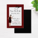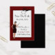 Joli style Art déco Enregistrer les annonces d'anniversaire de la date, faites en rouge, noir et blanc. Une belle oeuvre numérique d'un flapper rugissant des années 20 orne le bas à gauche de la carte, avec un cadre rouge foncé autour de la zone de texte blanc et un défilement décoratif noir fleurit en haut. Le texte en noir et rouge est entièrement personnalisable selon vos besoins.