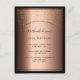 Célébrer un 50ème anniversaire (ou n'importe quel âge) en style! Un faux bronze brun arrière - plan à l'allure métallique, décoré de confettis dorés scintillant. Un simple cadre noir. Modèles pour vos informations de fête. Le nom est écrit avec une écriture manuscrite moderne et tendance en noir. Pour lui, les hommes, les gars. Dos : faux bronze métallique. Conseil : Si vous ne voulez pas qu'il ressemble à une carte postale, cliquez sur customiser, allez à l'arrière et retirez le séparateur et le timbre postal.